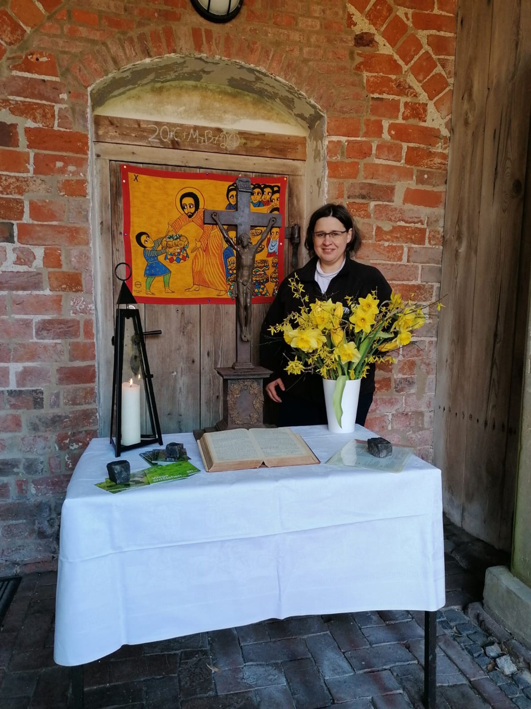 - Die Kirchengemeinde Beverstedt bietet eine öffentlich zugängliche Möglichkeit zur persönlichen Andacht unter dem Kirchenvordach. Hier finden sich wechselnde Texte zum Lesen. Eine Kerze brennt durchgängig bis zum Ende der Pandemie. Ein Kreuz lädt zur Andacht ein.