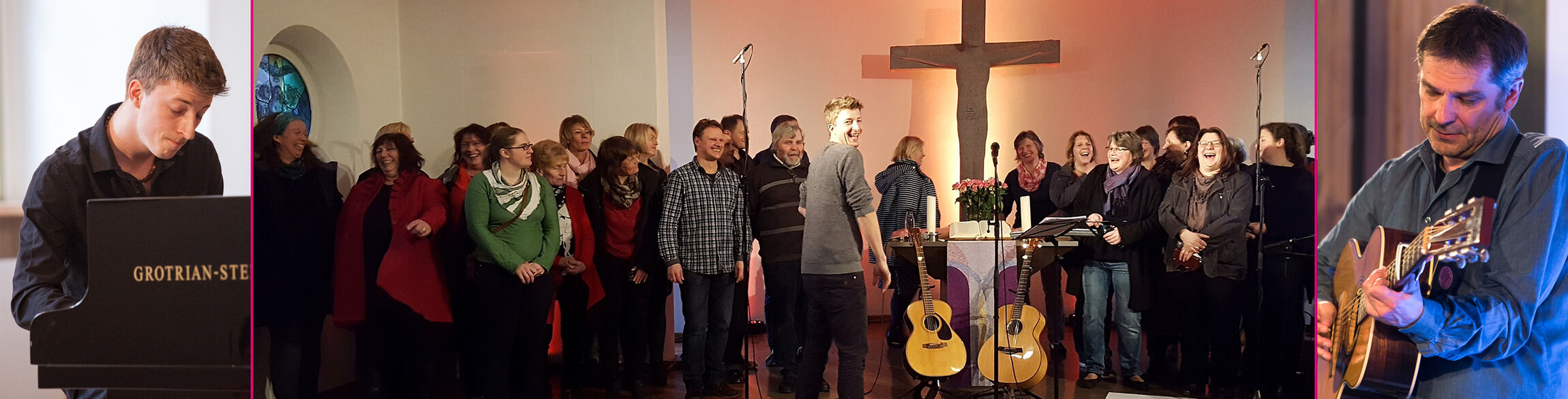 Timo Böcking und Martin Buchholz von der Popakademie Witten bieten zunächst um 16 Uhr einen Workshop als „offenes Singen“ auf dem Vorplatz der Kirche (Kapellenweg 7a) an. Dabei werden neue Kirchenlieder mit eingängigen Melodien in der Sprache unserer Zeit vorgestellt und miteinander gesungen. Chorerfahrung ist nicht notwendig.