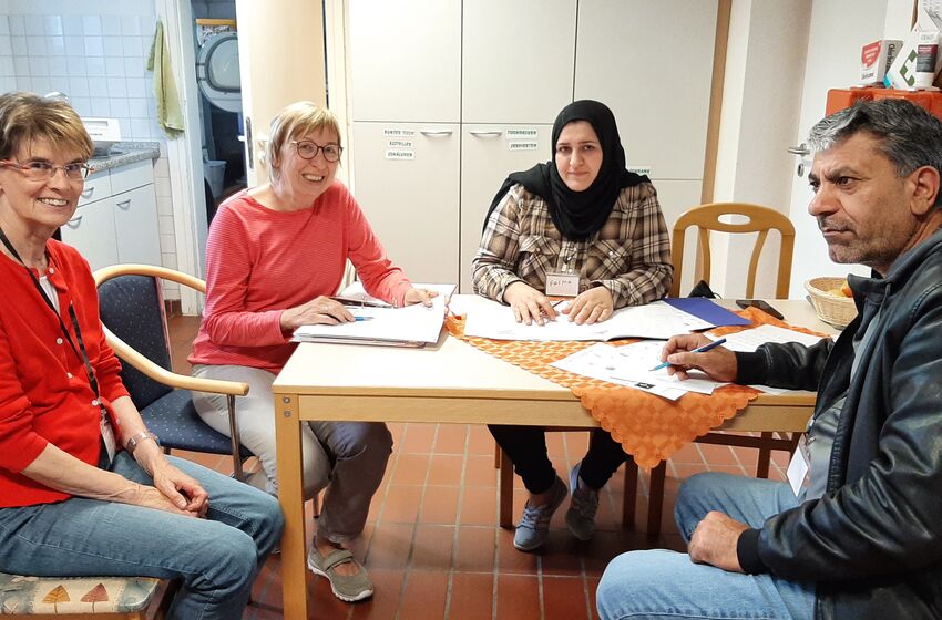 In der Küche des Gemeindehauses sind alle Blicke auf ihn gerichtet. Roed ist als Dolmetscher im Einsatz und verzweifelt gerade ein bisschen: "Er spricht arabisch, kurdisch, englisch - alles ...