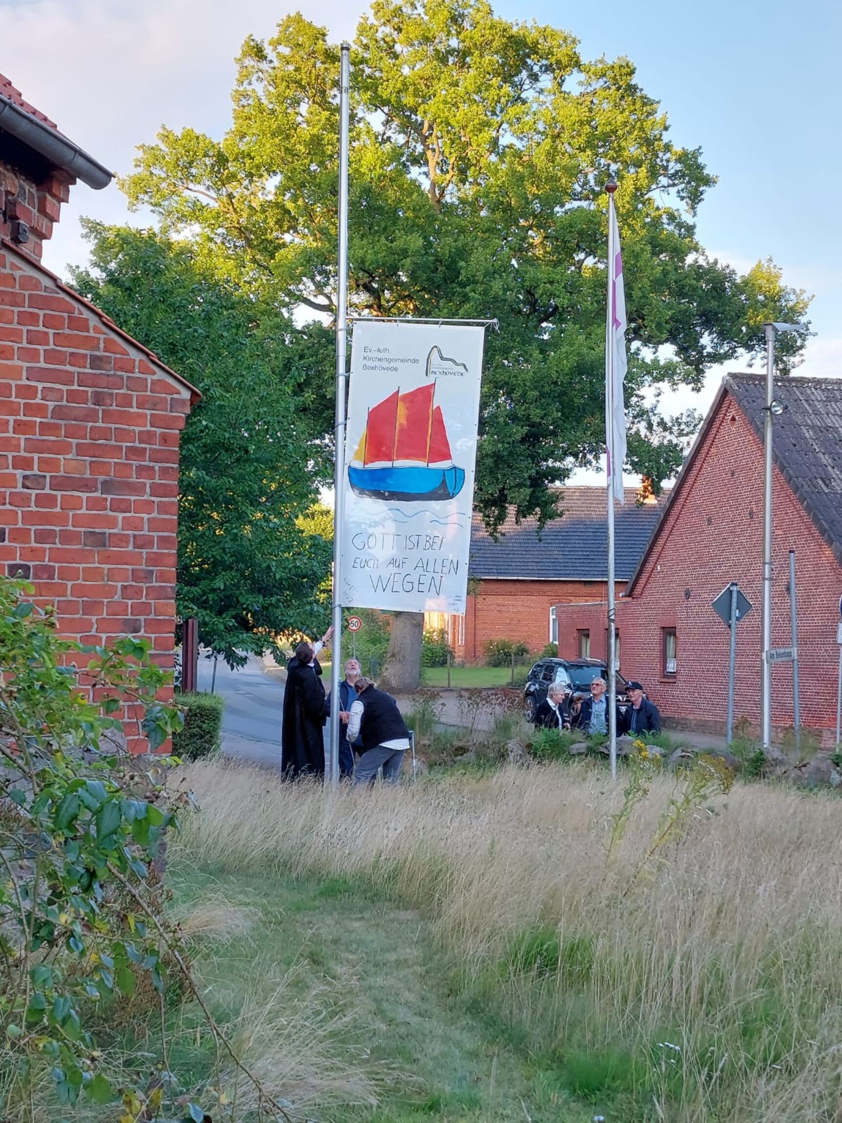 Die Bexhöveder Kirche ist mit ihren weit über 800 Jahren ein Schmuckstück für die ganze Region. Da passte es gut, dass auch Konfis aus der ganzen Region zusammengekommen sind, um gemeinsam zwei Projekte in Angriff zu nehmen: Die eine Gruppe hat ein neues Banner gestaltet und die andere Gruppe hat eine neue Info-Tafel entworfen. Beides wurde jetzt in einem Gottesdienst feierlich eingeweiht und kann jederzeit besichtigt werden.