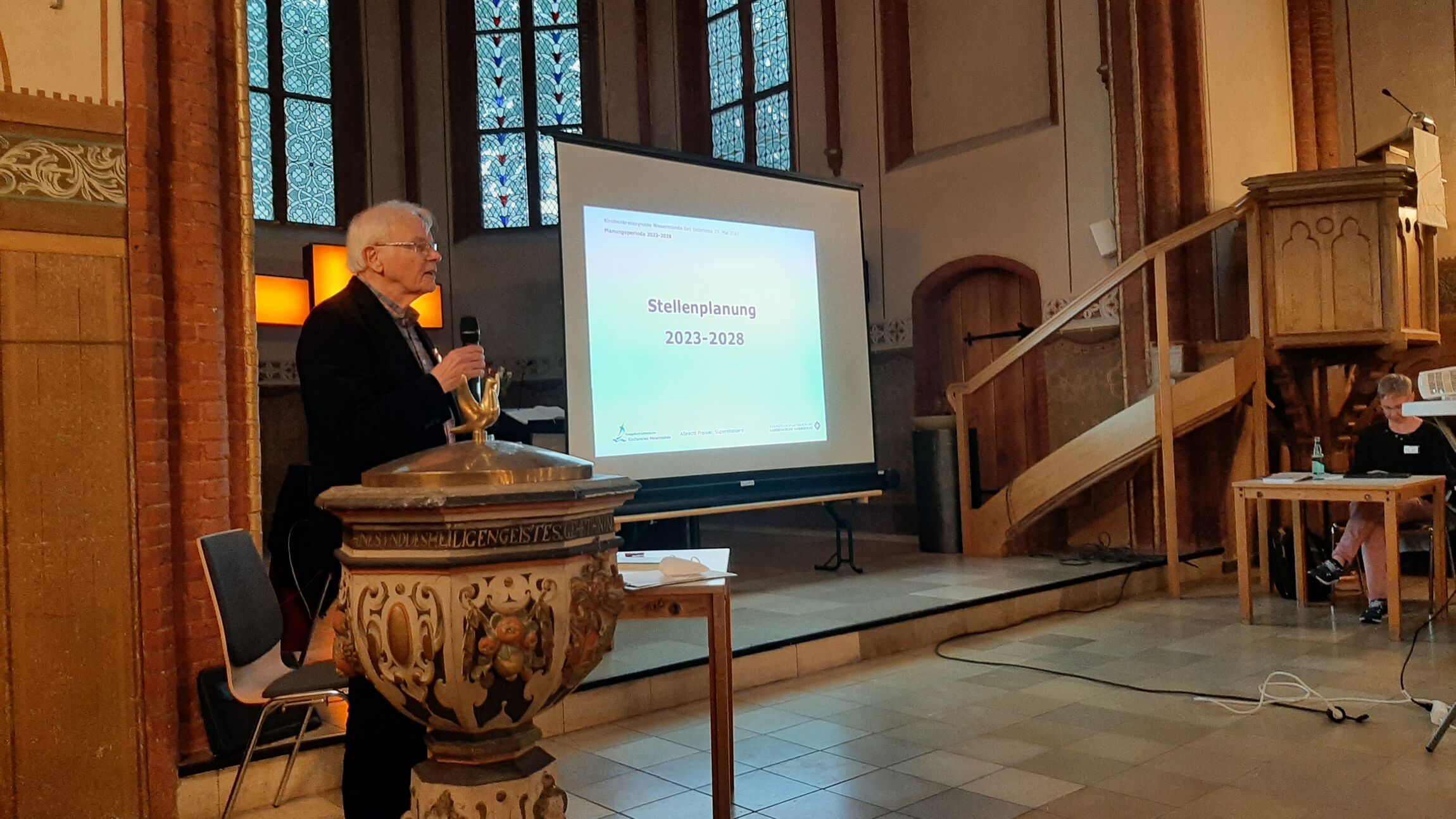 In Bederkesa mussten die Synodalen nun außerdem über drei Anträge abstimmen: die Errichtung einer halben Stelle für Fundraising, die vorzeitige Wiederbesetzung der Diakon:in-Stelle in der Region Südwest sowie die vorzeitige Wiederbesetzung einer der drei freiwerdenden Pfarrstellen in der Region Nord - und damit über Zusatzkosten von rund 642.000 Euro. "Wir stehen am Scheideweg", sagte Thomas Rogalla, Vorsitzender des Stellen- und Finanzplanungsausschusses. "Es sind große Summen, mit denen wir hier an die Rücklagen gehen würden."