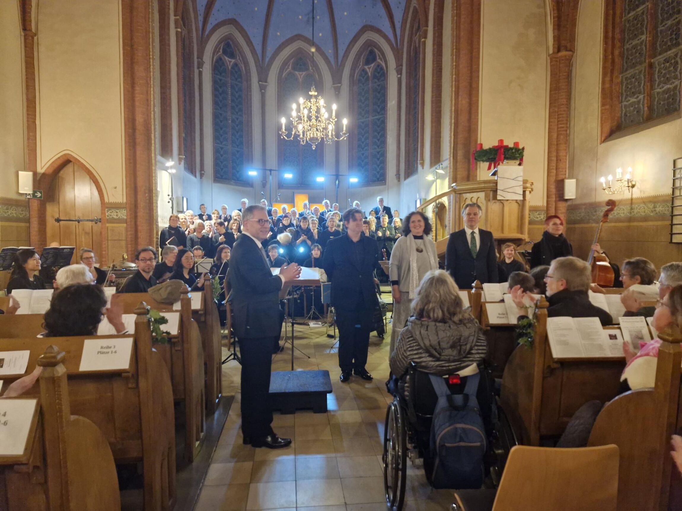 Ein Klassiker mit Pauken und Trompeten: Am Weihnachtsoratorium von Johann Sebastian Bach haben sich rund 200 Zuhörer*innen in der St. Jakobi-Kirche in Bederkesa erfreut. Unter der Leitung von Kreiskantor Timo Corleis führten das Barockorchester „Cappella Santa Croce“ aus Bremen, der Projektchor des Kirchenkreises Wesermünde sowie die Solist*innen Manuela Meyer (Sopran), Olga Cerná (Alt), Michael Connaire (Tenor) sowie Konstantin Heintel (Bass) die Teile I bis III auf.