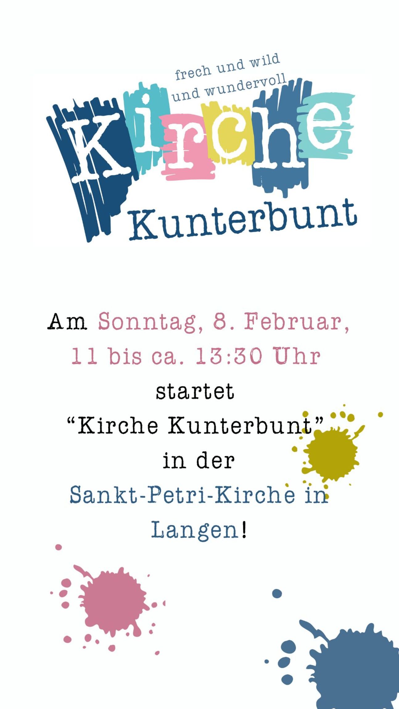 Mit Kaffee und Saft geht es los, mit einem Eis hört sie auf – die „Kirche Kunterbunt“ in der St. Petri-Gemeinde in Langen. Dazwischen gibt es ein abwechslungsreiches, kostenloses Programm rund um „Segen und Regen“ für Kinder, Eltern, Großeltern, Tanten, Cousins und Co.