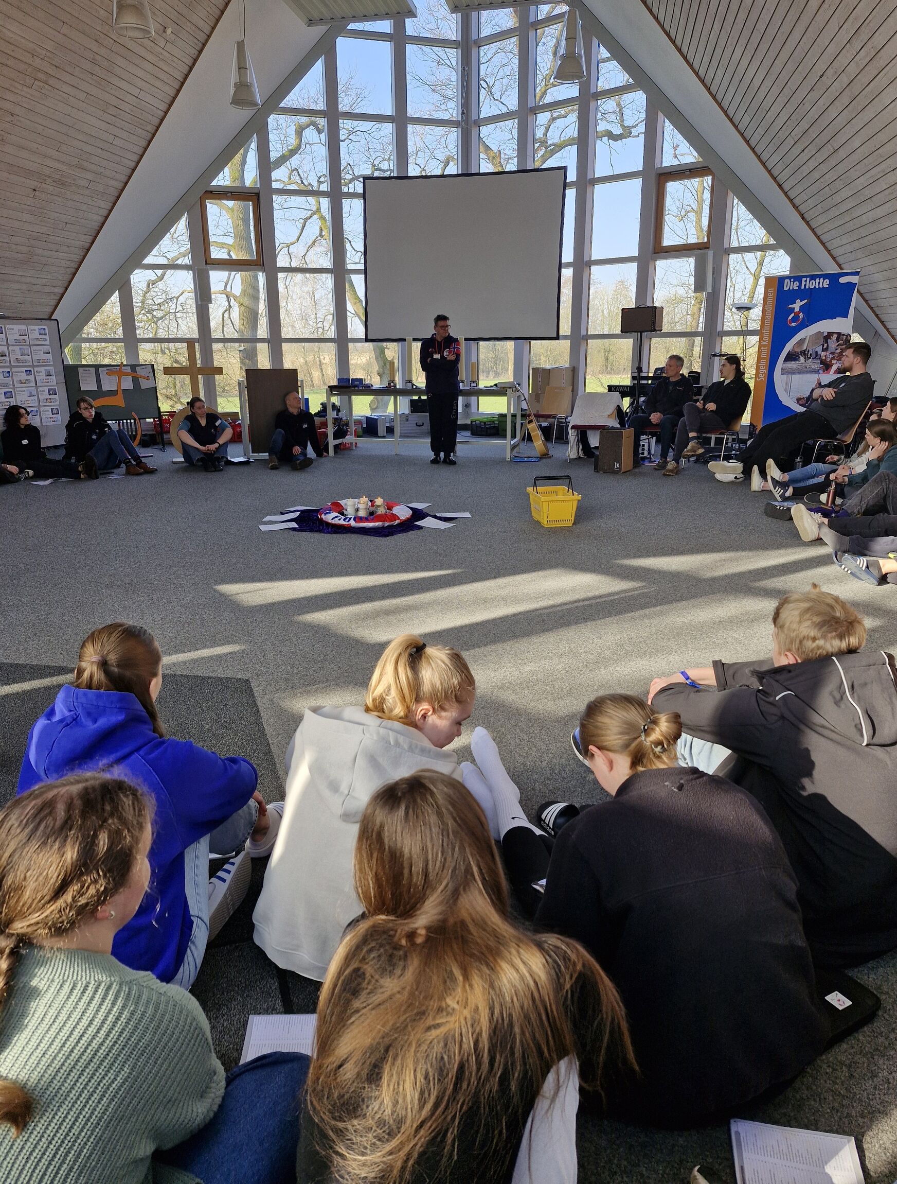 Im Evangelischen Jugendhof Sachsenhain haben sich 75 Haupt- und Ehrenamtliche auf die große Freizeit für Konfirmand*innen aus dem Cuxland eingestimmt. Mit insgesamt 14 Plattbodenschiffen ist die „Flotte“ 2025 unterwegs. „Das sind quasi 14 kleine Konfifreizeiten in einer großen Maßnahme“, sagt Kreisjugenddiakon Michael Hinrichs, der genauso wie Diakonin Birgit Blendermann bisher bei jeder „Flotte“ mit dabei war.