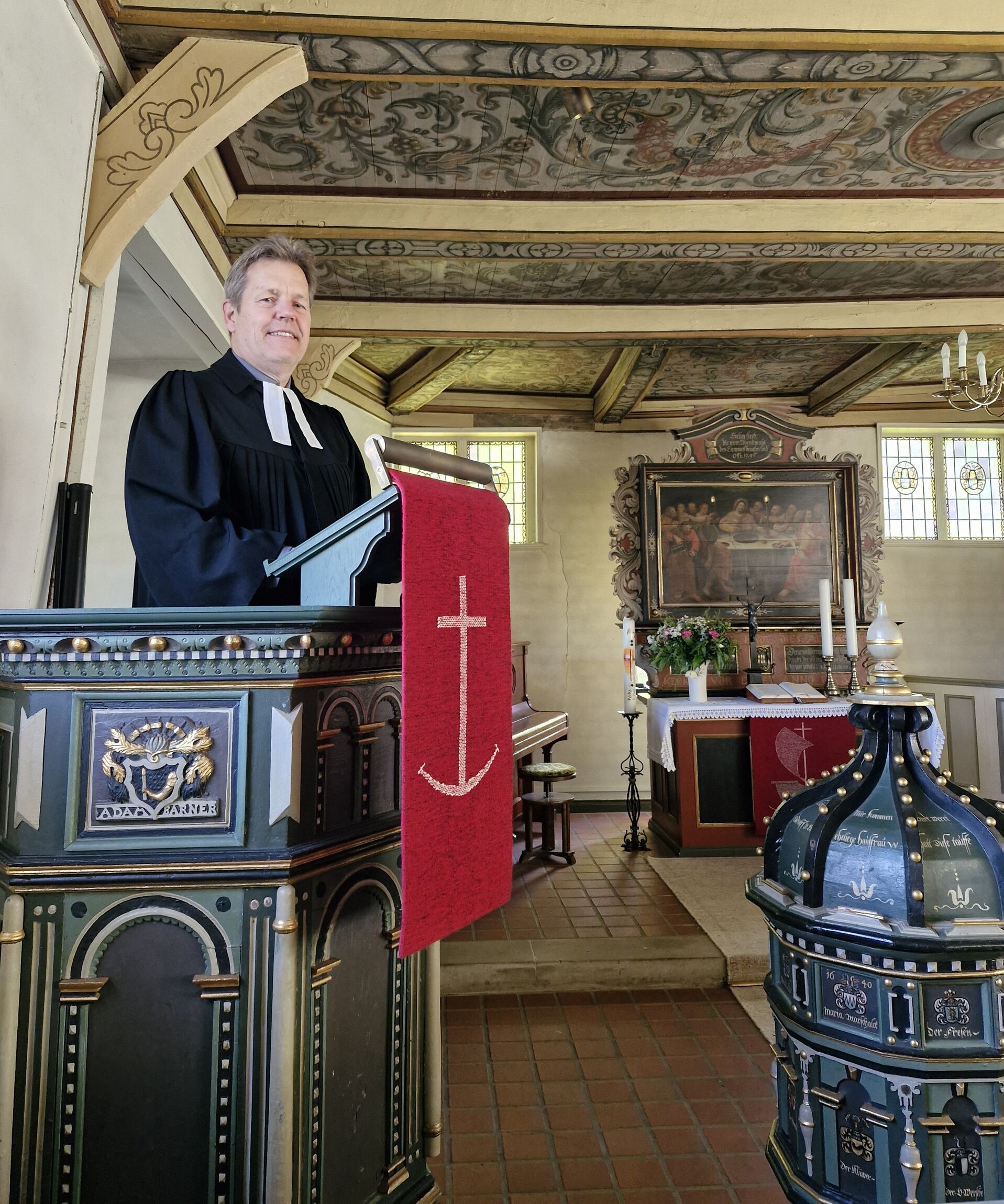 Die Sonne scheint auf das Gemeindehaus und die kleine Fachwerkkirche. Direkt dahinter erstreckt sich die saftige norddeutsche Weite, links am Horizont versteckt sich Bremerhavens Skyline. In der Seestadt war Neef von 1992 bis 2002 Pastor der Leherheider Lukasgemeinde, hat in Bremerhaven seine Frau kennengelernt. Sie wollte langfristig lieber aufs Land. Als er von der freien Stelle in Altluneberg erfuhr, bewarb sich der gebürtige Wolfsburger und blieb bis heute. Vielleicht wegen der Idylle und den vielen Möglichkeiten für schöne Radtouren. Ganz sicher aber wegen der Menschen. „Die Zusammenarbeit im Kirchenvorstand, aber auch mit den Kolleginnen und Kollegen in der Region, mit den Vereinen, Schulen, den Ortsbürgermeistern – das hat mir immer viel Spaß gemacht.“ Aus diesen Verbindungen auf Augenhöhe entstanden viele „berufliche Highlights“. Schulanfängergottesdienste, Gedenkfeiern im Oldenburger Haus, Tauffeste am Silbersee oder der Gottesdienst am Reformationstag: „Seit 2017 gestaltet diesen der Ortskirchenvorstand mit Anspielen und Szenen. Das ist immer etwas Besonderes.“ Dazu kamen Gottesdienste außerhalb der Kirchenmauern, nicht nur in Altluneberg, sondern auch in den zur Kirchengemeinde gehörenden Ortschaften Geestenseth und Wehdel.