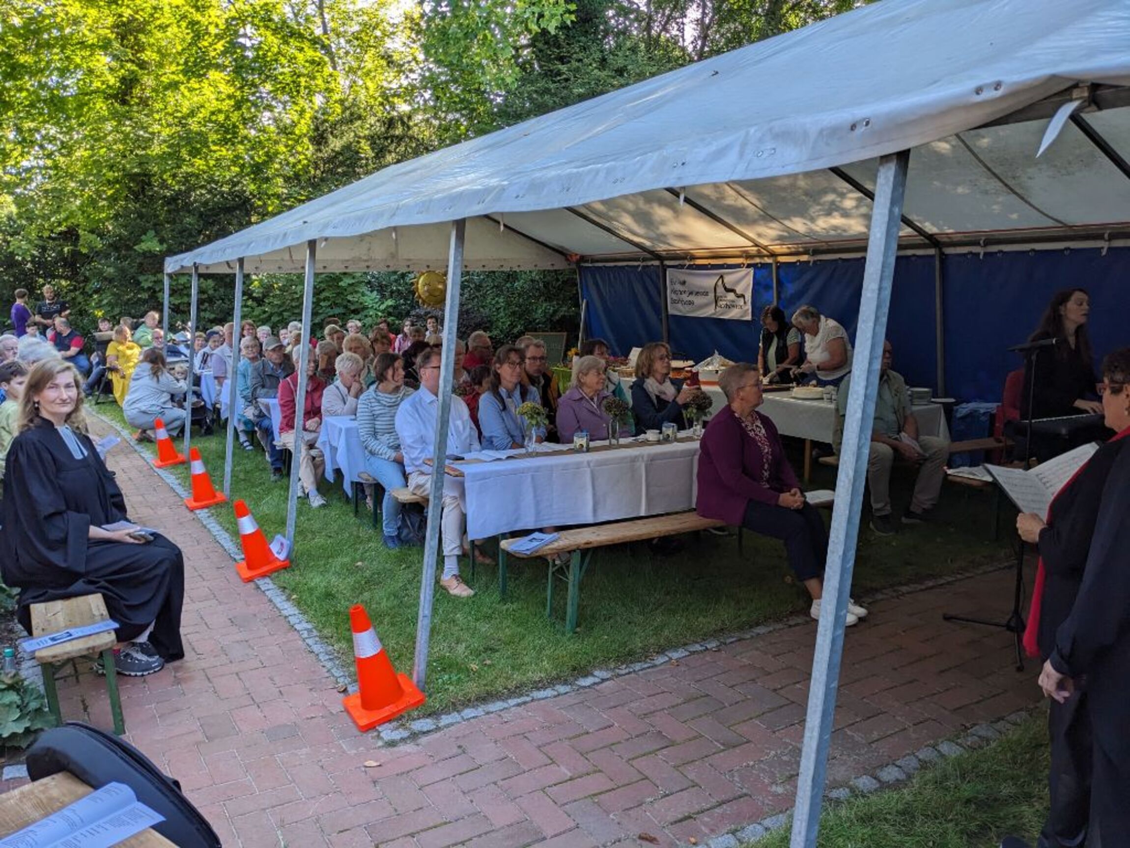 „Wir machen das jetzt zum vierten Mal – und immer hatten wir solch ein tolles Wetter“: Kirchenvorsteher Uwe Jokiel ist sichtlich zufrieden, dass die gute Verbindung „nach ganz oben“ Sonnenschein garantiert. Und auch Pastorin Lara Schilde ist glücklich: „Es ist für mich ein segensreicher Tag voller wertvoller Begegnungen mit neuen Gesichtern und auch vielen der Gemeinde verbundenen Menschen. Besonders freut es mich, dass so viele junge Familien mit ihren Kindern da sind.“